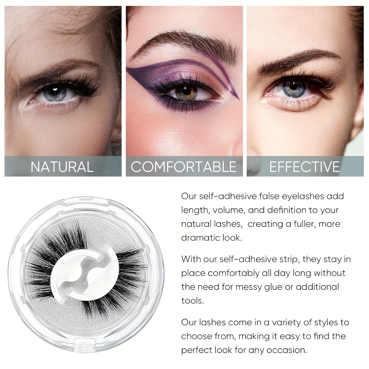 Selbstklebende falsche Wimpern – 3 Paar dünn & Wiederverwendbar